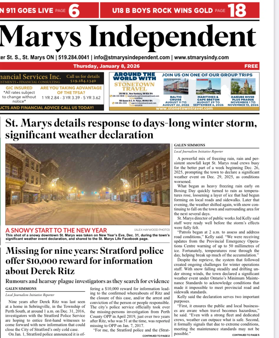 Ritz’s disappearance has haunted not only his friends, but the small community west of Stratford which has dubbed itself “The Hamlet with Heart.”