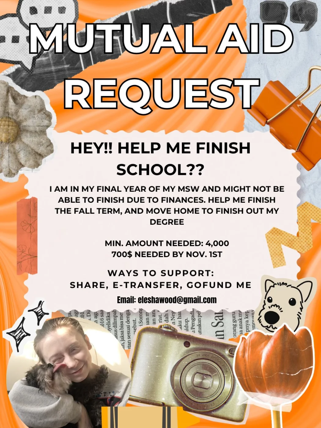 All of EW’s belongings including cell phone and laptop were destroyed in the fire