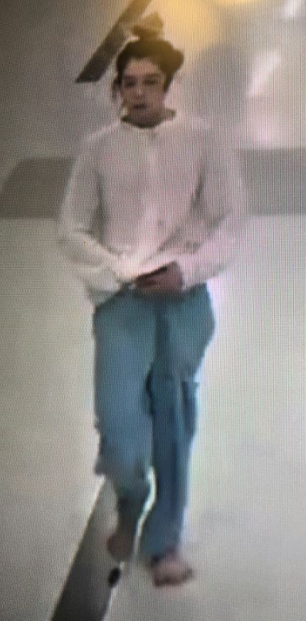 She was last seen wearing a long sleeve white shirt and blue hospital pants.