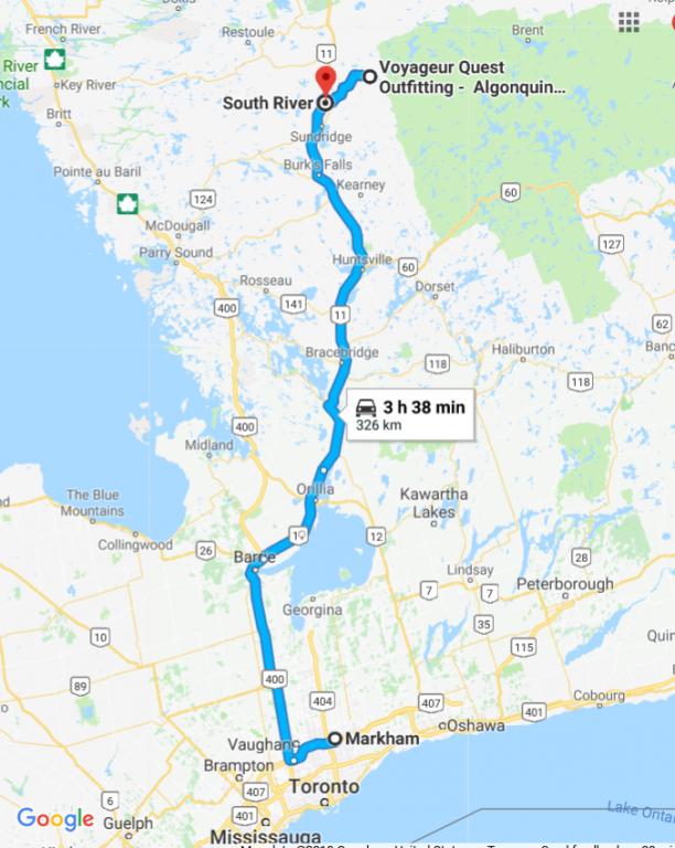 The distance between Voyageur Quest Outfitting (where Eugene supposedly stopped) and Chemical Road in South River is around 10km, depending upon where exactly his car has been found.