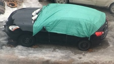 I'm very curious about that tarp. From what I've seen, police in Ontario often use a bright orange or blue tarp for covering vehicles or remains, and usually do so when they are being towed away, as in the case of vehicles.