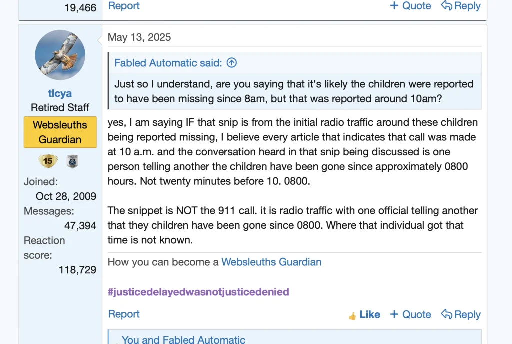 What bothers me is that it's been 9 weeks now, I sure hope these people have given this info to the police and not just on YouTube and TikTok.