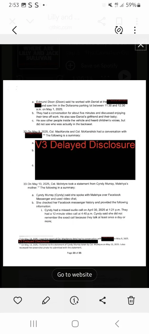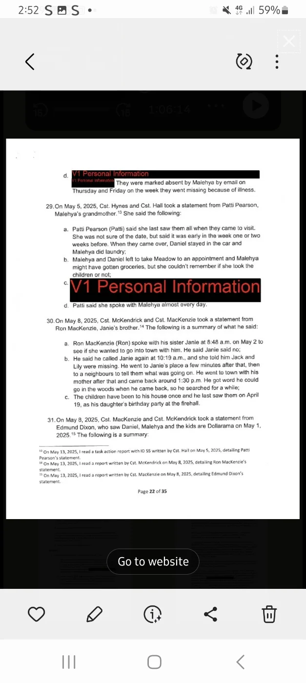 Well it would appear there is nothing to reveal and if the rcmp are asking mum if potential evidence is relevant, I don't know what to think as regards the condition of the investigation