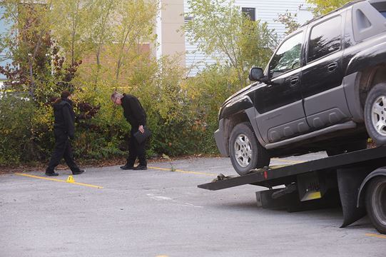 By 5 p.m., a flatbed tow truck was brought in and the pickup was towed away. Shortly after, police removed the yellow tape that had blocked off the area of investigation.
