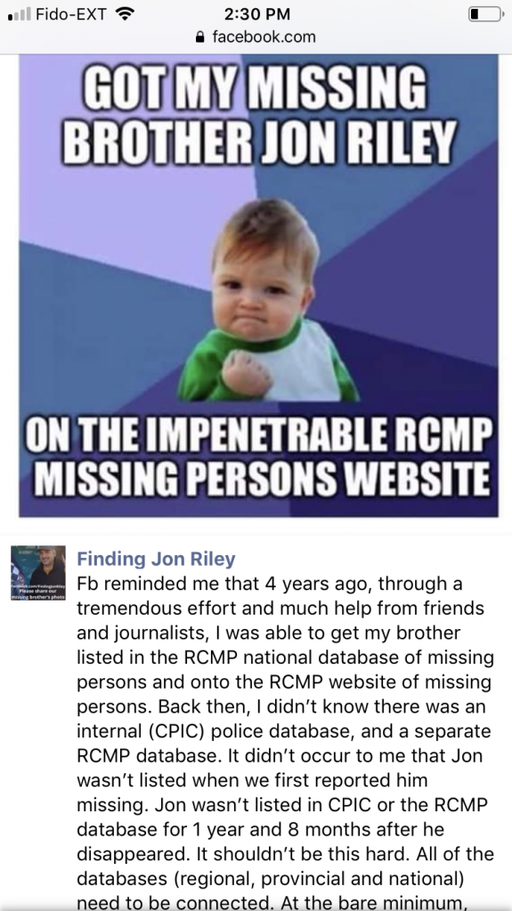 “Judi Riley has been tirelessly advocating for changes to the way missing persons cases are handled by Canadian law enforcement. Her brother, Jon Riley, has been missing for more than five years. She launched an online petition and detailed the challenges she said her family endured trying to get his disappearance taken seriously.“