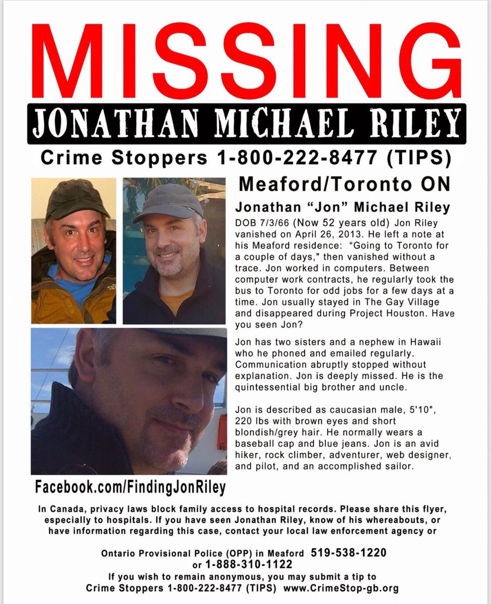 "An avid sailor and hiker who worked as a computer analyst, her brother lived with their mother in Meaford where she’d retired after giving up their Toronto home. In May 2013, he left a note: “Mom gone to Toronto for a couple of days. Got my GST.” No one has heard from his since.