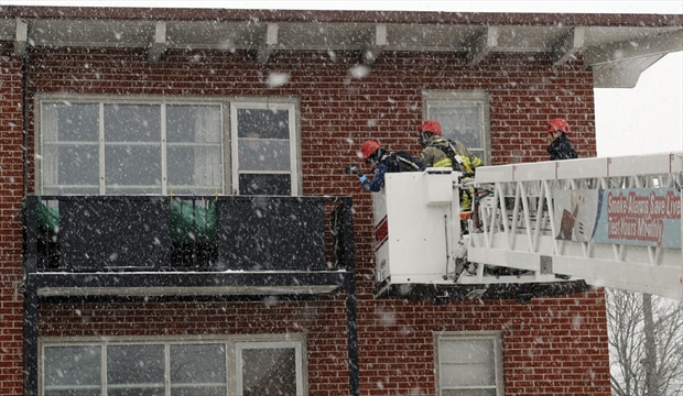 Possibly and maybe using the aerial firetruck to not contaminate the scene? Which leads to speculation of whatever happened to her happened on the balcony and below.
