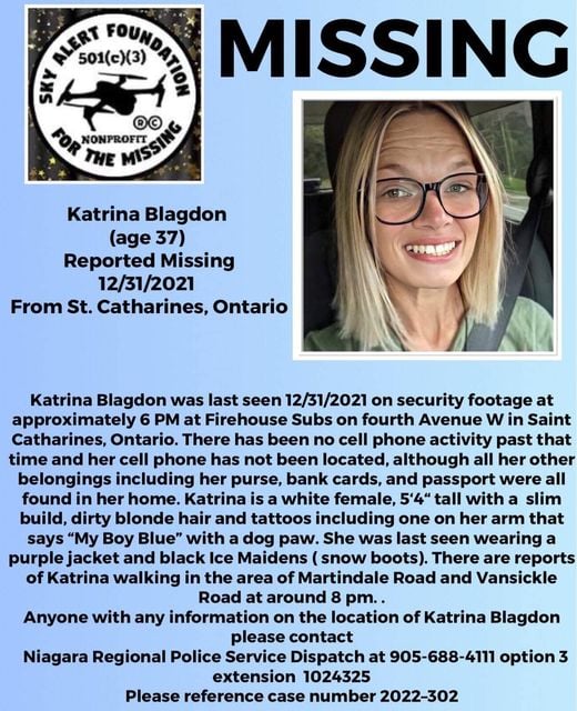 Katrina Blagdon, retired Canadian Armed Forces Supply Technician, was last seen on December 31, 2021, in the area of Vansickle Rd N and Martindale Road, in St. Catharines.