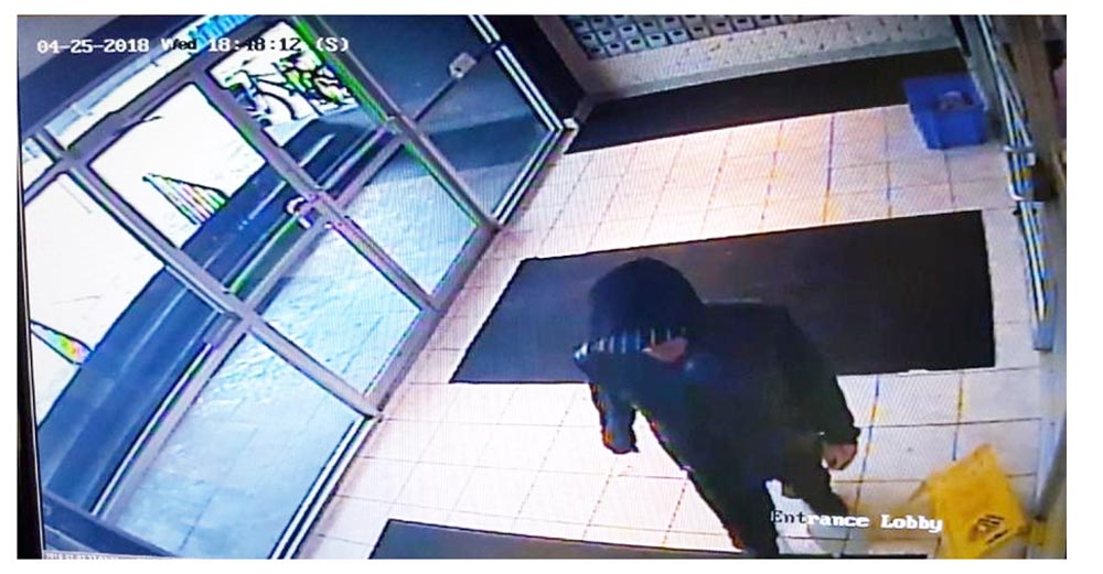 "Durham police have released a surveillance camera image of Kevin Zapp in the lobby of an apartment building at 222 Nonquon Rd. on the evening of April 25. After attempting to enter the building Zapp left westbound on Nonquon; it is the last known sighting of the man, police said."