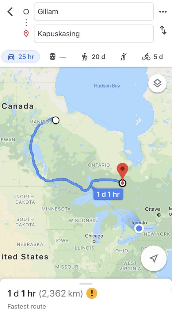 I wouldn't put anything past these guys at this point but what are the chances they could drive all the way from northern MB to eastern Ontario (around 2000km) without being seen even once along the way, at a gas station or on the road or anything.. They were spotted several times on their first journey to Gillam - The Cold Lake incident, the Co-op surveillance, the checkstop guys, the gas station in Split Lake.. I think the "sighting" by the construction worker is very likely false. Why would they be driving around in plain sight during the day & flashing guns at people when they're on the run/in hiding