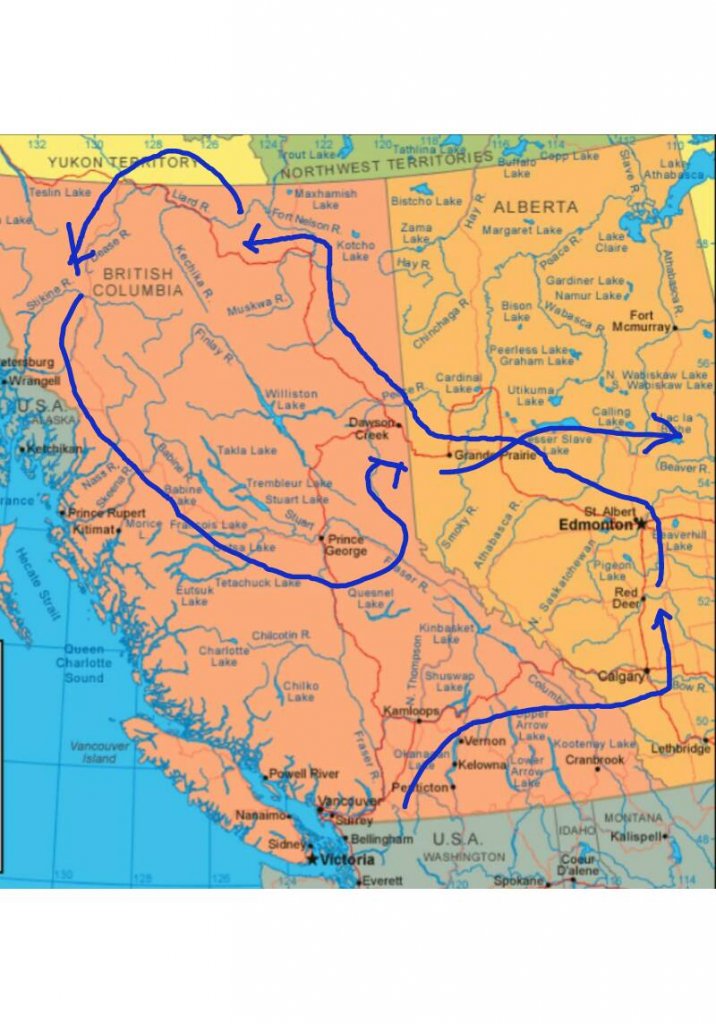 People from PG do travel north through Dawson Creek, then head south on Highway 2 to get to southern Alberta. These two were coming from the island. They may have had reasons to go through Spences Bridge or Merritt, for all we know. But we don't know.