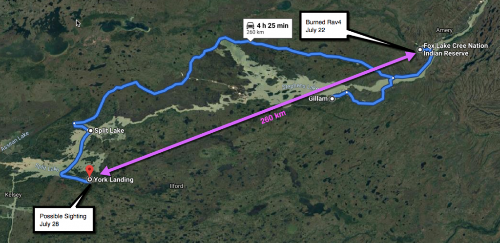 So...York Landing is 200 Km (about 123 miles) from Gillam. 5 (or 6) days since last sighting. They would have to travel, at a minimum, 20-25 miles per day to get to York Landing. Is that even possible, accounting for sleep breaks, eating, etc... if they were traveling by foot or rail? It does lead credence to the possibility they had some third-party assistance in getting there.