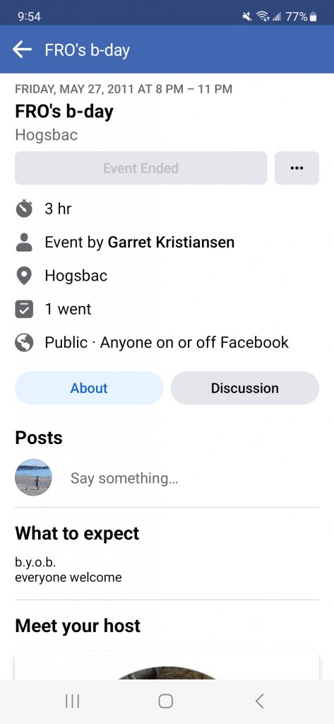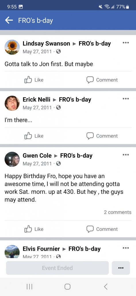 In the documentary, they show a quick flash of a Facebook event entitled "Fro's birthday", which is hosted by Garrett Kristensen (sp?).