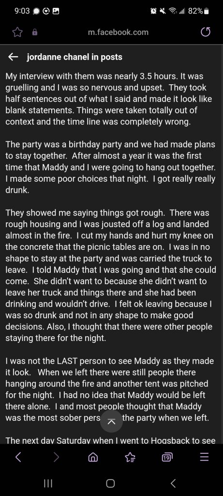 RIP Maddy. I was 14 when she went missing, and although I didn't grow up in Northern BC my grandpa was born in Vanderhoof and I still have family in the area. I also grew up with Maddy's first cousin, so Maddy's picture was all over my town growing up and to this day. So I really grew up with this case weighing on me, and what happened to Maddy was told as a cautionary tale for us girls when it came to camping/bush parties/looking out for each other. Because Maddy was adamant she wanted to stay when Jordy was leaving because of being hurt, and because Jordy left her alone. That could have been me, I definitely would have told my friends to just go on while I stayed by myself. I just joined Websleuths to comment on here because I am just so relieved for the family that there is a break in the case and Maddy can be laid to rest.