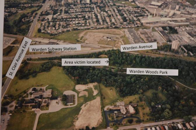On the day she died, McWilliam left her basement apartment on Santamonica Blvd. at around 7 p.m. Police believe she jogged north on Santamonica to St. Clair Ave. E., went west on St. Clair Ave., passing the TTC station on Warden, and entered Warden Woods Park on the southwest corner of Warden and St. Clair. Police believe McWilliam was attacked as she jogged along the single-lane road that wound through the park.