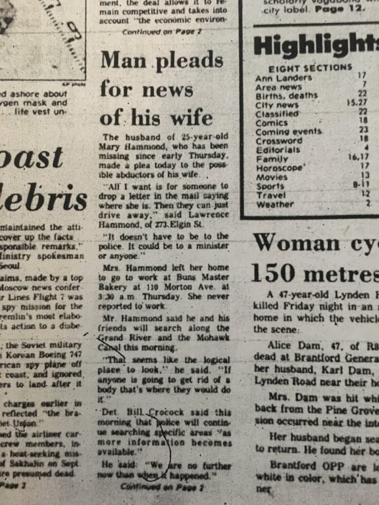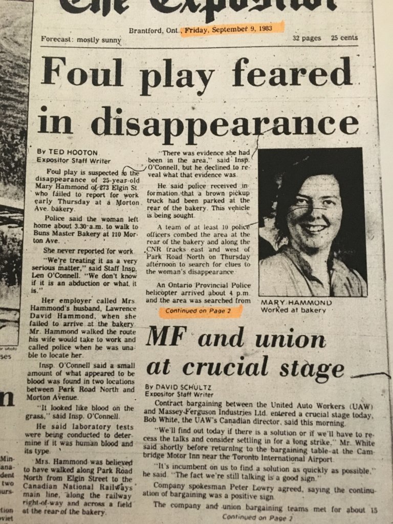 Welcome to Ws. thanks for bumping Mary's case!Does anyone have any photos or areal shots/artists' rendition of the area in 1983? The area has changed quite a bit in the past 36 years. Also, I couldn't find any news articles to say where exactly she lived on Elgin Street. Trying to get a good visual of the typical walk she would make at that time. Also, very interested in the crime statistics for Brantford in 1983. There was some economic downturn (with plant closures and people losing employment) leading up to 1983, which was a contributing factor in the crime rate. I read somewhere (and sorry I can't recall the articles) that the Crime Rate at the time was at it's highest..but I can't find any breakdown (i.e. primarily theft/burglary/drug related offences).