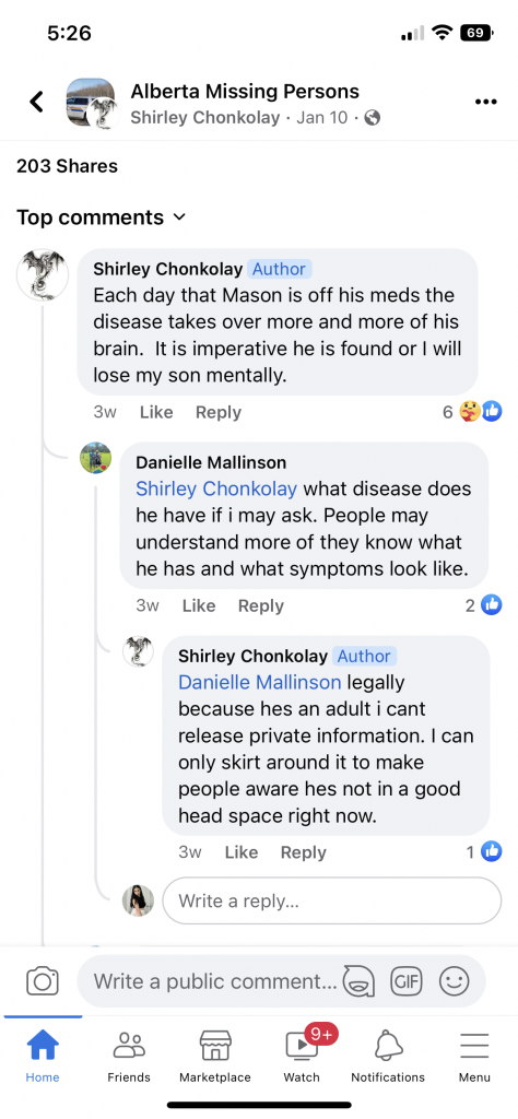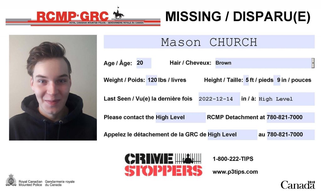 Mason Church (20) was last seen in High Level (Alberta Canada) on December 14 2022.