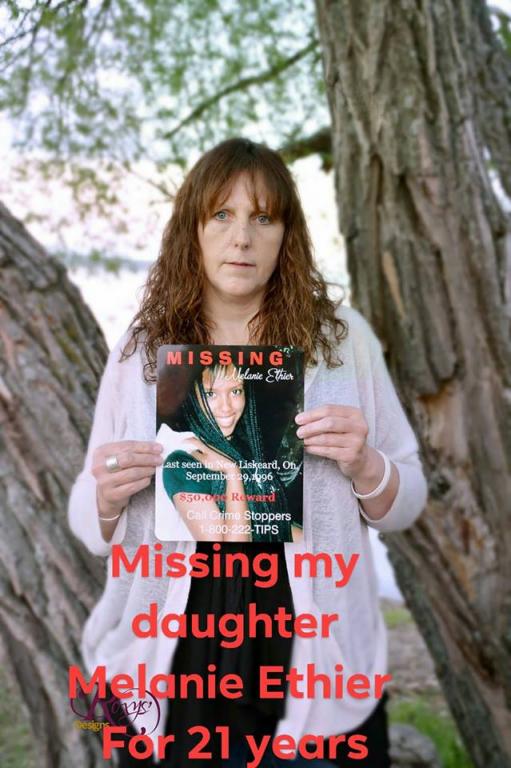 "In the early morning hours of Sunday the 29th of September 1996, Melanie Ethier, a 15 year old female, left her friend’s residence located on Pine Street East in the Town of New Liskeard to walk to her residence a short distance away. She has not been seen since. Foul play is strongly suspected in Melanie’s disappearance.