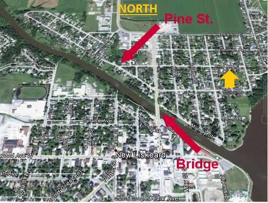 - The yellow arrow is at Pine Avenue East (correct location...)
