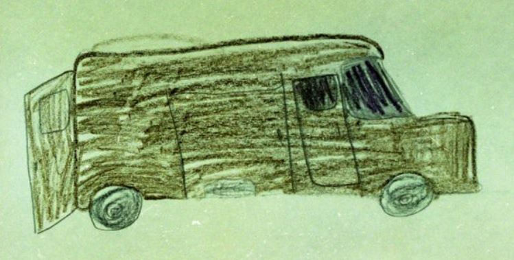 These kinds of vans look like modern UPS vans. They also seem to be food-truck vans or ice-cream vans. I wonder if someone would also like to camperize a van like this, suggesting to me that Michael might have been abducted by the lodger of a campground or RV park. Picture the white van below as brown and it resembles the child's drawing.