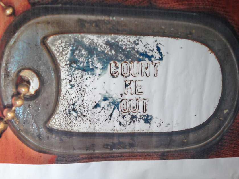 The man was also wearing a dog tag with the words "count me out" on it -- the title for one of Bane's songs.