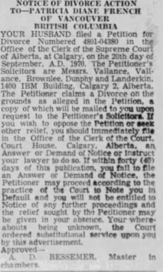 It would seem that a letter was mailed to her last known address, and this newspaper notice states that if no response is forthcoming the divorce proceedings could go forward.