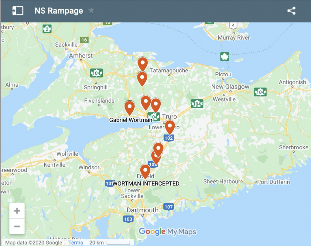 Police have said there’s at least 16 crime scenes. This began with “more than 10” victims and now it’s up to 22 with the possibility of more victims scattered throughout northern NS. During one of the PCs it was stated it will take months to conclude their investigation, which would presumably include the route he took.