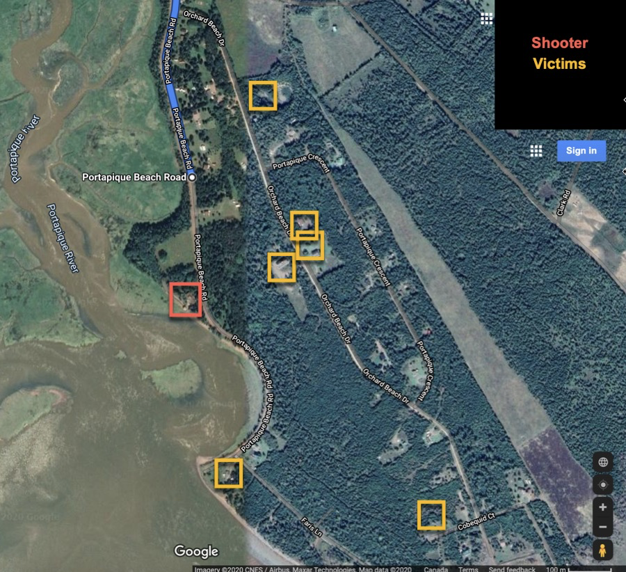 Shooter's house, backs onto Portapique River
