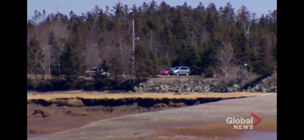 These photos are taken from Bay Shore Road. From across the Portapique River. Looking over to the lower end of Portapique Beach Road. #293 has been burnt down.
