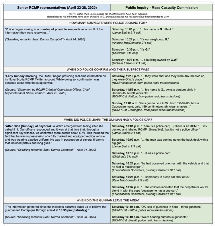 “…..Among other things, the inquiry has been asked to determine why it took police 13 hours to stop the shooter, and one theory holds that the police investigating the shootings in Portapique concluded the rampage had come to an end on the first night.
