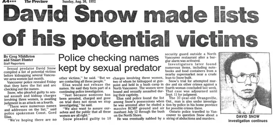 On Monday, the OPP announced that they had arrested and charged Snow in a long-unsolved cold case murder in the Bancroft area. A dangerous offender, Snow is currently under lock and key at Millhaven.