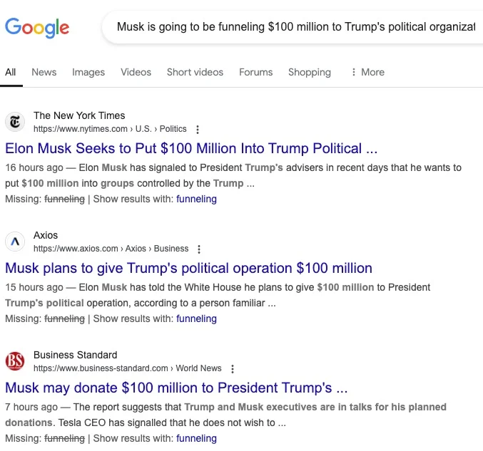 Axios had this news yesterday, but clearly some major media didn't want this information to land at the same time as the White House Car Show. Trump "buys" a Tesla, Musk gives him $100 million.