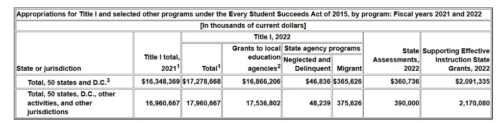 2022: Title I expenditures per pupil were $316 on a national level and ranged from $126 in Utah to $547 in Mississippi.