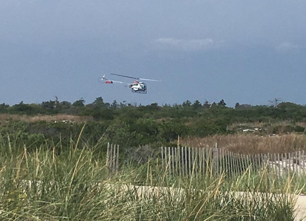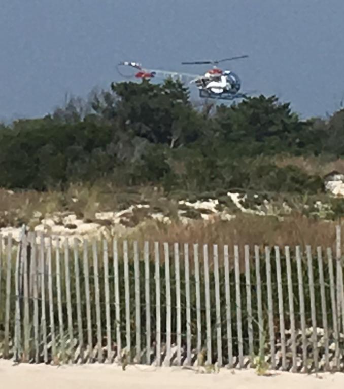 The helicopter pictured is not Suffolk, Nassau or Marine police. It appears to be a private helicopter, possibly charter to taxi people from NYC to the East End AND back or any number of locations on the Island. Though it appears very low I think the angle by which it was taken makes it look lower than it was. It is pretty common for helicopters to fly fairly low, using the shoreline AND the parkways as a landmark guide to follow. I live a block south of the parkway & helicopters are a daily occurrence flying low & loud.