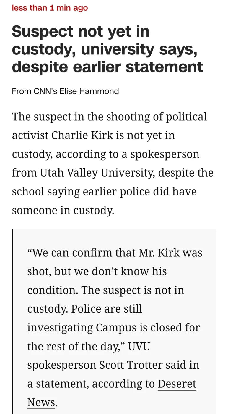Rightwing activist was shot at just after midday local time; university says suspect is not in custody
