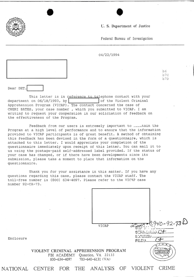 More troubling is that even after the DNA comparison which excludes Barnett, the RPD still kept the focus on him as a suspect, and refused to pursue the possible Zodiac connection to the case. I can personally state that in 2009 and 2010 Detective Steve Shumway of the RPD refused to look at or consider evidence pointing to the Zodiac as the killer of Cheri.