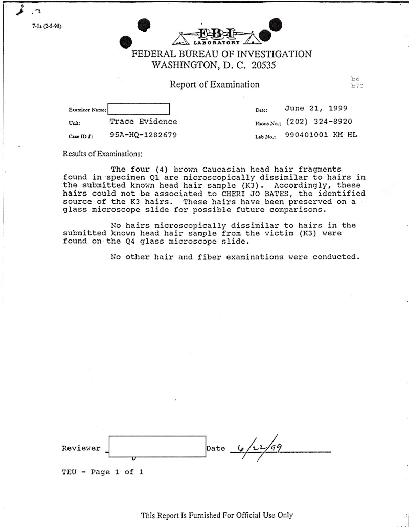 Also the report indicates FOUR hairs found on the blod clot in Cheri's hand. IMO it could be possible ONE hair came from a police officer or lab tech. But not FOUR hairs on a BLOOD CLOT.