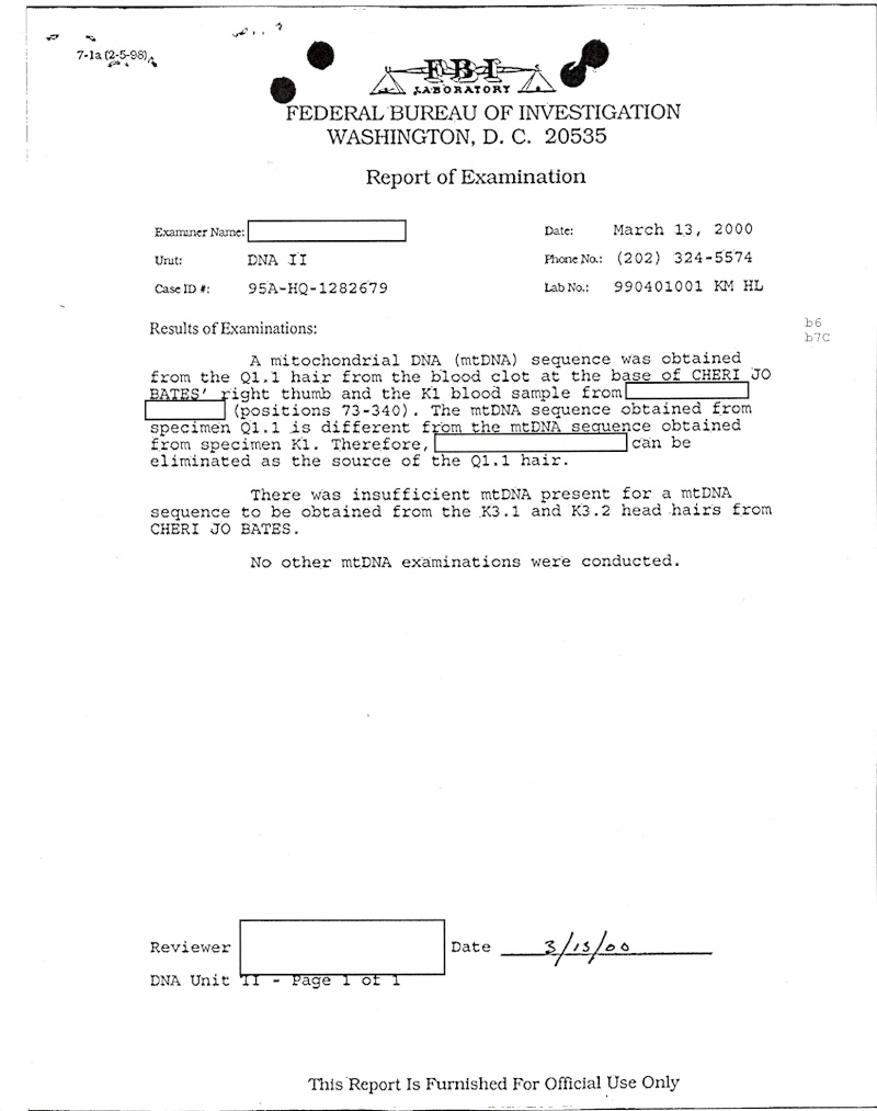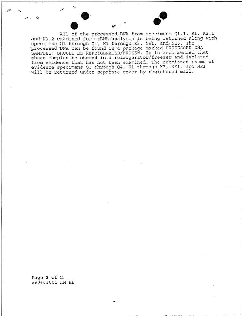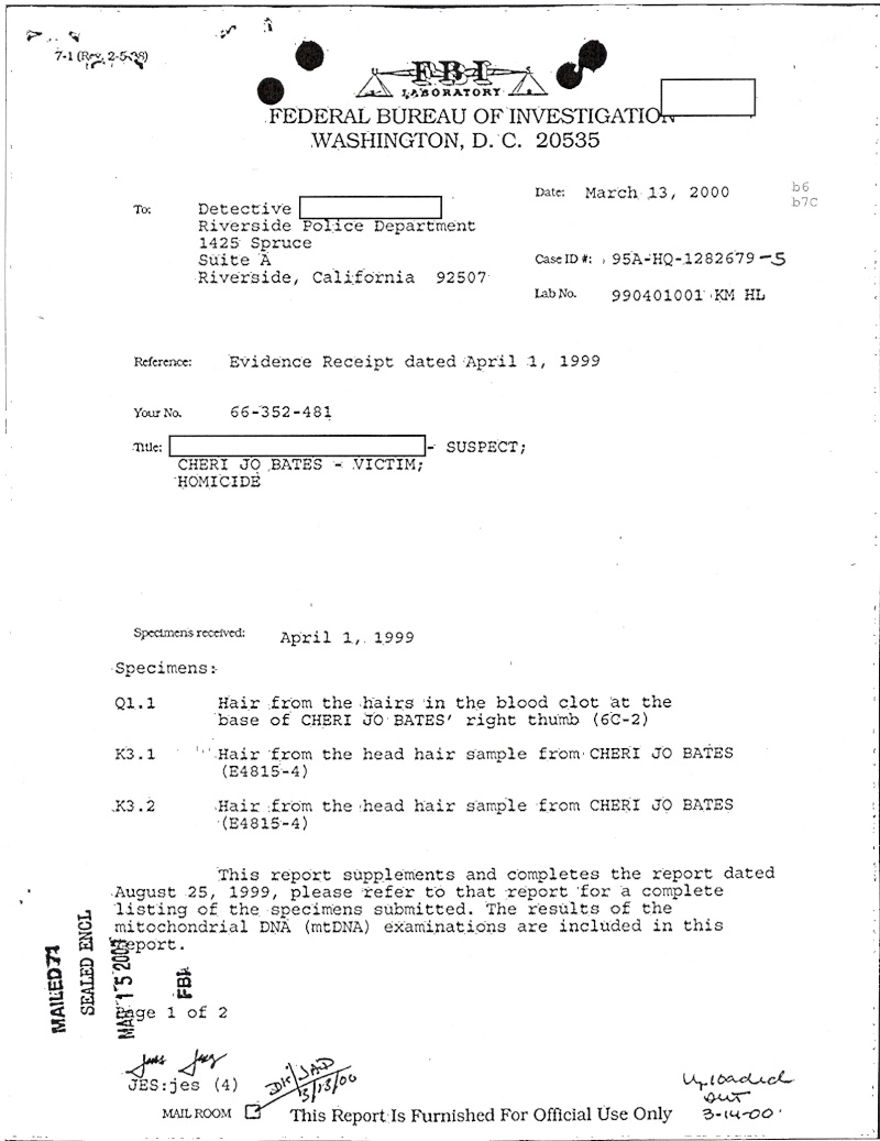 I see that a person claiming the whole Zodiac case is a hoax says the mtDNA used to compare to local suspect 'Barnett' was aged and faulty. These reports show that is false as they show a good sample was obtained and Barnett was conclusively cleared as a nonmatch. Also for those who say the hair in Chei's hand could have come from a cop that seems highly unlikely as these reports show it was actually FOUR hairs in a blood clot.