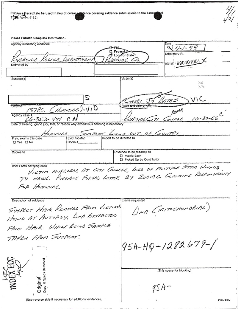Also in regards to the evidence pointing to the Zodiac Killer/Ted Kaczynski as a suspect in the Tylenol Murders, if the FBI wants to actually solve that case they could easily compare the DNA here in the Bates case, which is very likely the genetic profile of the Zodiac Killer (and IMO also Ted Kaczynski), to the DNA they have in the Tylenol case.