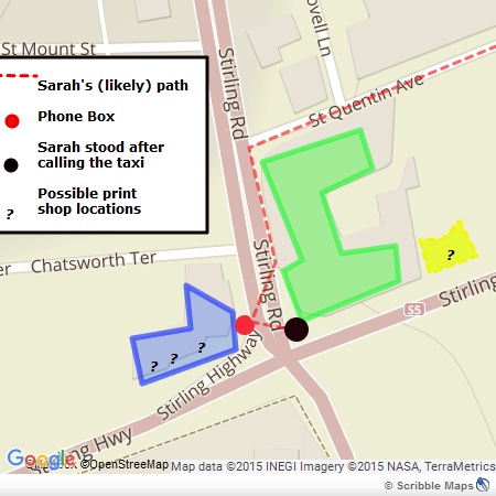 It could make a difference because if the print shop was where papertrail remembers (yellow bldg) and an attack was coming from that direction, it might be easy to sneak behind Sarah and pull her around the corner and behind the print shop.