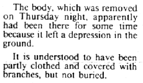 I am now searching for the articles for you; I know that articles at the time of both JR and Cg discoveries mentioned their bodies were covered in foliage, branches etc. But I am absolutely certain there is a reference that stated 'cut'. It could have been in one of the Sunday Night programme interviews with Ferguson.