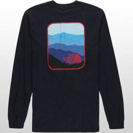 I see a feminine posture/stance, as if this were a young woman pausing at a trailside verge to check her phone and view the scenery.