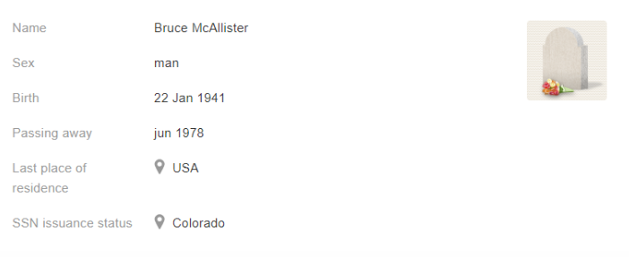 Bruce Scott McAllister was last seen in Centennial, Colorado on June 18, 1978. His vehicle, a brown 1972 Ford Maverick sedan, Colorado license plate # PP6769, was later recovered.