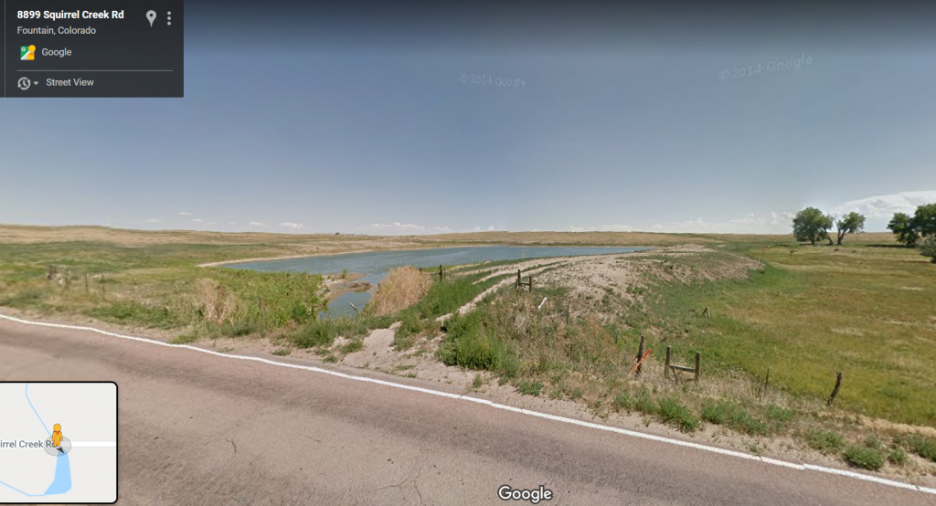 Where Fountain Ditch meets Squirrel Creek Road is more likely. There's much more open area with no homes (at the time of the pics I was looking at). There are 3 bodies of water along the ditch here, probably fairly shallow. Interestingly, one of these practically touches the road.