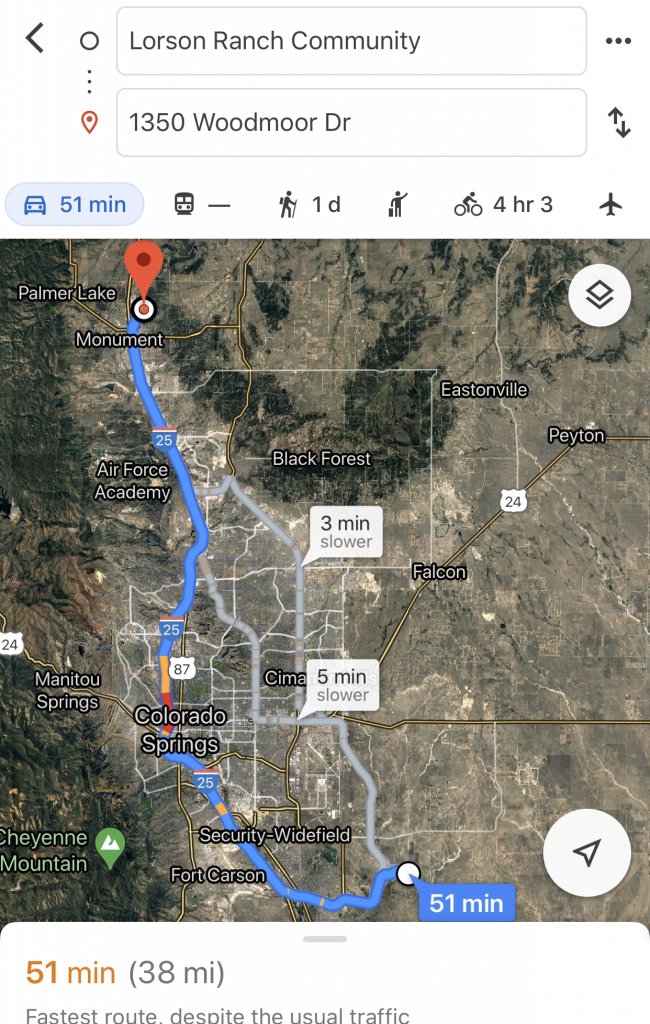 Yes that’s correct, if they are in Woodmoor. It’s basically a forest with a bunch of houses. Bigger lots and a lot of thru streets. East if there it becomes prairie, I guess you would say. Further west and you cross the interstate are closer to Palmer Lake. There is an Open Space to the north and west across I-25. Access to it is from a small parking lot along county line road.Is this it?