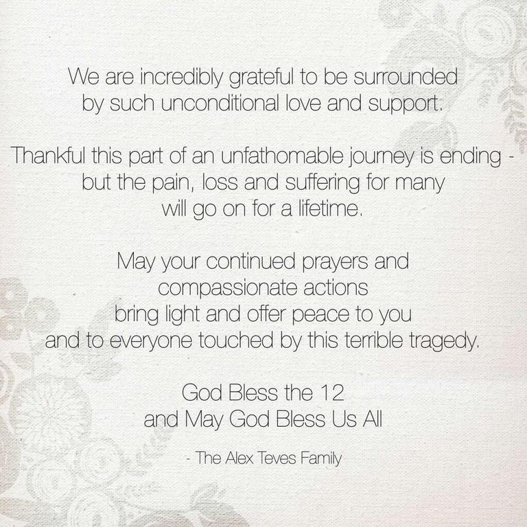 Colorado hearts will forever remember and be with the 12 lost, their families, all of the survivors, the first responders and the hundreds of others hurt by this crime. But I for one, will not persecute 12 more people for carrying out their constitutional duty under the law in making their decision today.