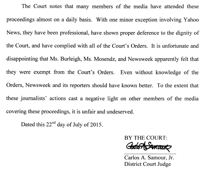 Court releases order banning @Newsweek from #theatershooting courthouse. http://dpo.st/1ejnV8o