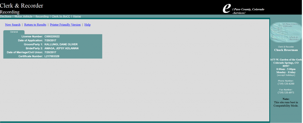 El Paso County Marriage/Civil Union Records Search