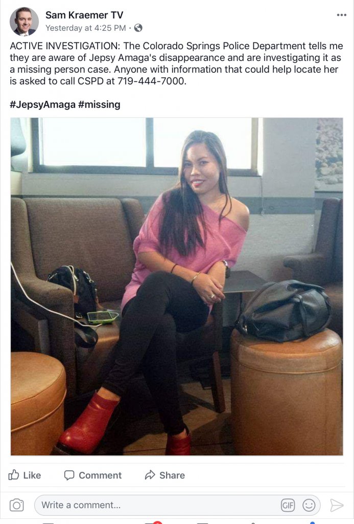 “BA spoke with the Colorado Springs Police Department on Wednesday, confirming that a missing person’s report was filed on Jepsy last April 4th.”
