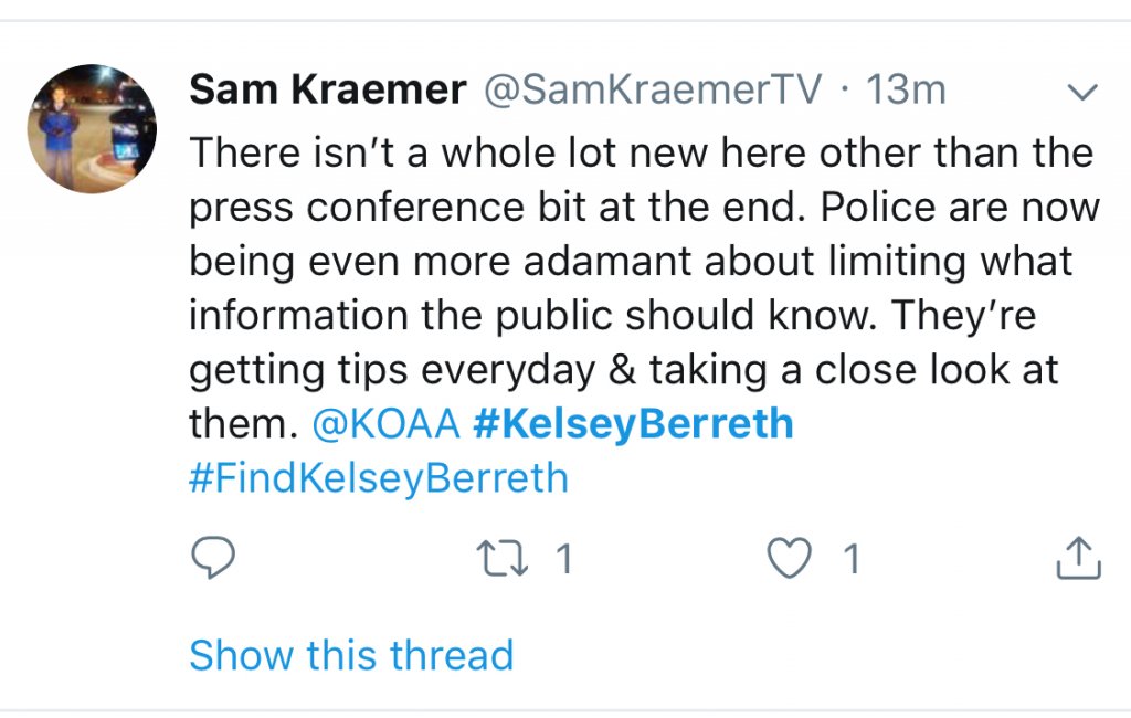 Again, I’m at the police station. So, piecing this together, it sure looks like they came back for more of those bags. @KOAA #KelseyBerreth #FindKelseyBerreth